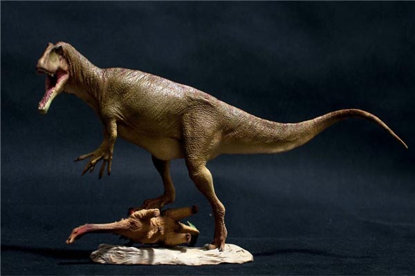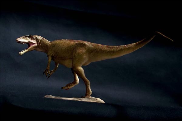 特暴龙,它可是霸王龙的远方亲戚,它们主要生活于白垩纪晚期,属于暴龙科的一种。但是在这所有的暴龙科中,最长十二米,它的前肢算是短小的,可身材却是又粗又壮的,超强的咬合力能将猎物瞬间就撕裂。
