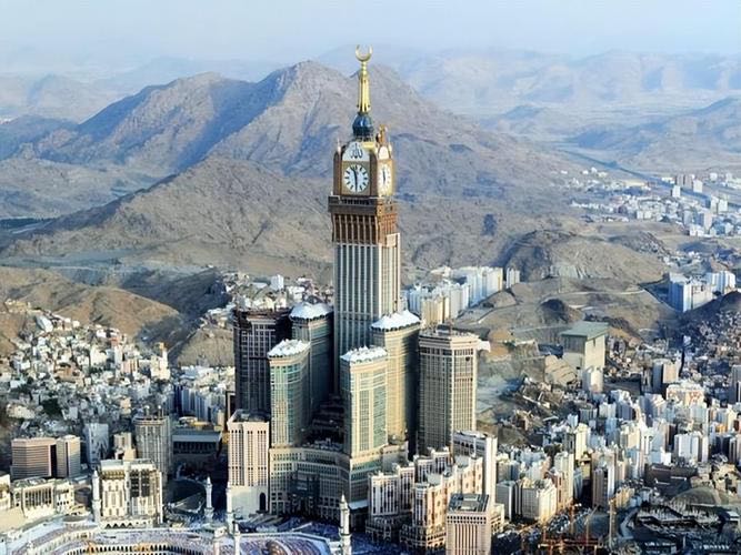 麦加皇家钟塔,位于沙特阿拉伯王国的伊斯兰教圣城麦加。[bai]建筑高度601米,共120层,是世界第四高楼,仅次于迪拜塔(828m)和东京晴空塔(634m)上海中心大厦(632m)。该钟塔由众多大楼组成,为全球最高的饭店建筑,其中最高的一栋作为饭店,高度达601米,共95层。