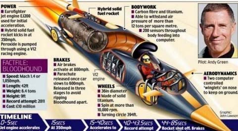 今朝的陆上最高行驶速度是由安迪·格林(Andy Green)驾驶“超音速推进号”(Thrust SSC)在1997年创造的。其最高时速达到了760英里(约合1223公里)。