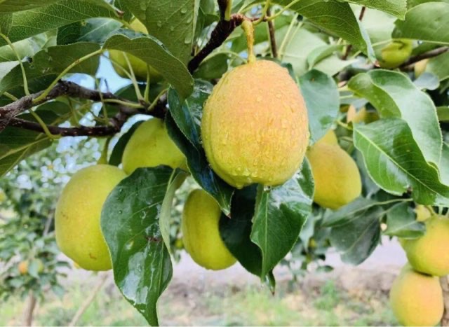 库尔勒香梨是新疆库尔勒地区的特产水果,库尔勒香梨不仅外形美观,色泽漂亮,而且皮薄肉厚,口感脆甜多汁,被誉为“梨中珍品”,是中国十大名梨之一。