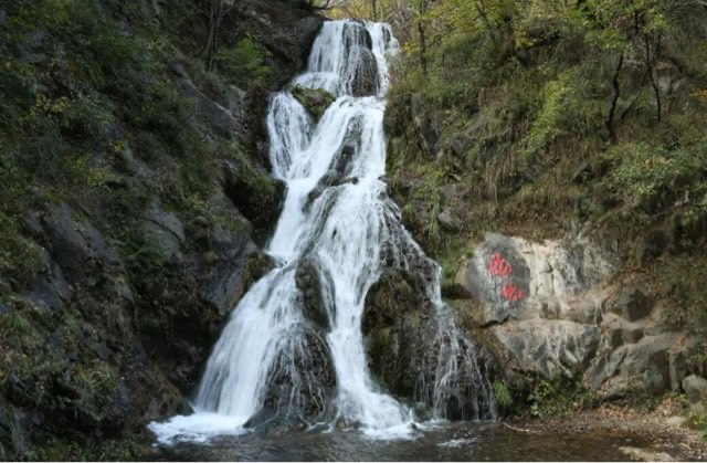重渡沟风景区位于河南省栾川县潭头镇西南部,有数十条瀑布,较具代表性的是水帘仙宫瀑布、震天雷瀑布、泄愤崖瀑布等。水帘仙宫瀑布长70米、宽8米;瀑布下方有一片钙化池,如同一面面镜子平放在半坡之上。震天雷瀑布如天河直泻,一条分支泻入两米深井样的洞内,又从洞壁的孔中流出,一弯三折,穿石而下。瀑声隆隆震天作响。这是中国十大山谷瀑布景区之一。