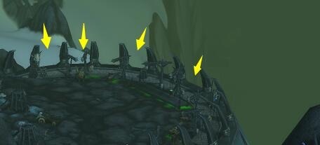 2、带着这些浑身冒火的骷髅前往缝合场平台边缘,可以看到很多被锁住的憎恶,带着它们靠过去,它们就会自动和憎恶同归于尽,任务进度+1