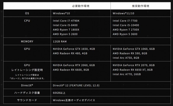 具体来说,最低需要i5-8400的CPU,12G内存以及1650显卡,硬盘需求为60G。想要更好的游戏体验,官方推荐i7-7700,1060显卡和12G内存。详细配置如下:
