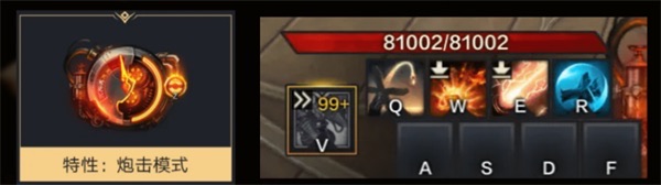 【炮击模式】积蓄火力能量的同时,还会积累右侧的炮击能量,当炮击能量攒满之后,按Z键可以切换为炮击模式,炮击状态下将获得新的炮击技能;