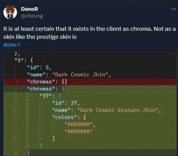 此前,有网友称该皮肤为“暗星尊烬的神话炫彩”,但很快官方就辟谣了,表示这就是烬的全新皮肤,并不是老皮肤的神话炫彩。但根据Twitter上网友分享的解包数据显示,烬的新皮肤在拥有全新原画的同时,仍然以炫彩的方式存在于客户端,而并非至臻皮肤。