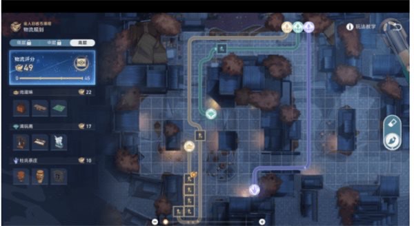 1、开场先往下面的图区域进行放置路经,货运物流得分49。