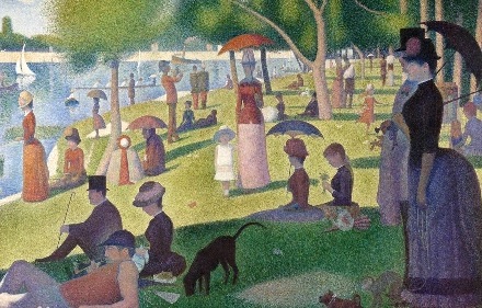 1890年,修拉在一次个人画展上展出了一幅名为《大碗岛星期天的下午》的作品,这幅作品被认为是点彩画派的开端。在这幅画中,修拉运用点彩手法,将各种不同的颜色分布在画布上,形成了一种独特的视觉效果。这种新颖的绘画技法引起了广泛关注,使点彩画派逐渐成为了19世纪末期法国画坛的一股新兴力量。