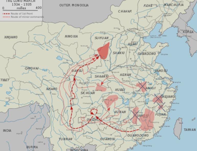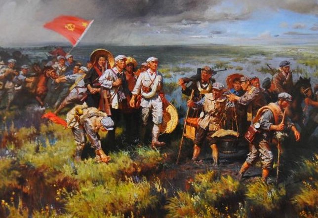 由于王明“左”倾教条主义(冒险主义)实行错误的军事战略,1934年10月,红军第五次反“围剿”遭到严重的失败,中央红军被迫进行长征。红军的长征,是世界历史上前所未有的壮举。从1934年10月至1935年10月,经过一年长驱转战,胜利完成二万五千里。