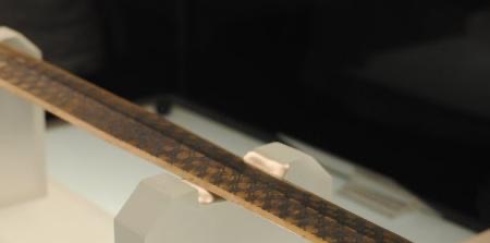 其三,越王剑通身有很华丽的菱形纹饰装饰,使得整剑具有极精美的外观,这些菱形交错的纹饰,只能作为纯装饰用,并且剑身锉出凹槽来做纹饰,也为本来就脆的剑增加了折断的概率;