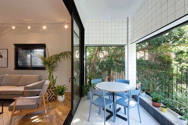 2、给大家支一个小招,有些人喜欢打造与室内空间不一样的阳台,但事实上将阳台铺设与客厅一样的地砖会使阳台空间看起来很宽敞,有扩大空间的效果。