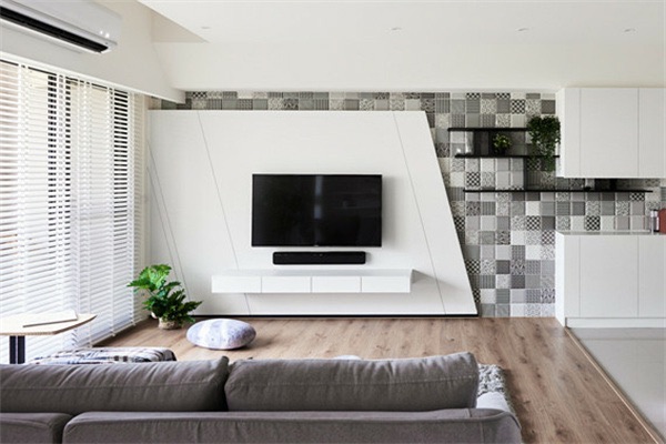 如果不需要考虑过多的收纳需求,最简单方便的方法就是装矮柜电视柜,下方的抽屉就是收纳的主力军,电视上方不装柜子,看上去不会有压抑的感觉,顺眼有舒适。