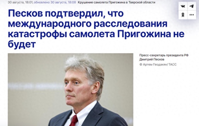 俄总统新闻秘书佩斯科夫:俄罗斯正在对普里戈任在空难中死亡进行内部调查。