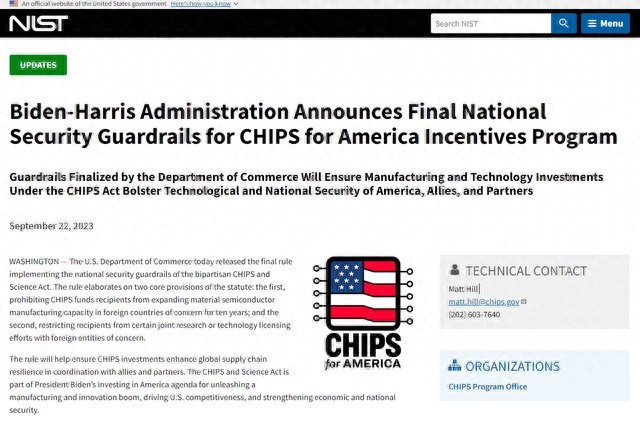 据上海证券报,美国商务部芯片计划办公室9月22日发布声明称,美国商务部当日发布实施《芯片和科学法案》国家安全保护措施的最终规则。