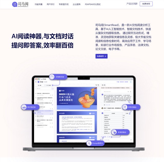 司马阅是一个免费强大的 AI 文档阅读分析在线网站。