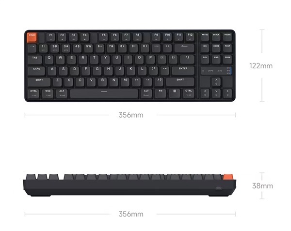 小米机械键盘TKL采用紧凑87键布局,提供线性轴VC Pro、段落轴VB Pro两种款式,前者适合办公码字,后者适合打游戏。