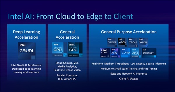 Gaudi系列加速器则专注于机器学习、深度学习的环境,以及未来对大语言模型的需求。