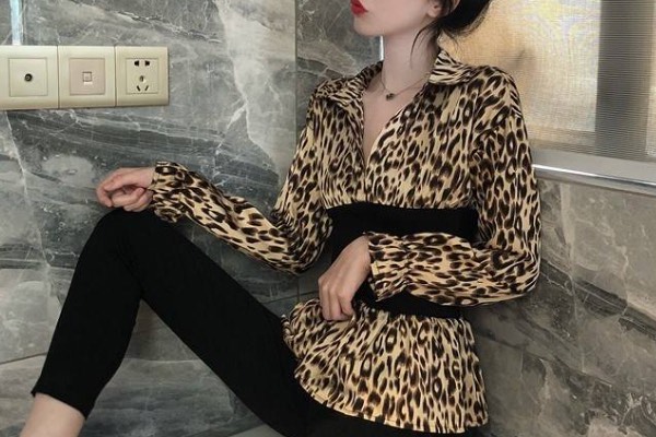 2、配黑色西装裤:一款豹纹雪纺的长袖女士衬衫。这种面料比较轻薄透气,适合夏天穿。豹纹元素充斥在整件上衣中,给人一种女性典雅端庄的非凡气质,适合那些白领丽人穿。配上黑色的西装裤,这种完美的搭配使得白领丽人隐隐约约中透露着一种女性的性感美,无形中为知性女性增加了不少魅力。