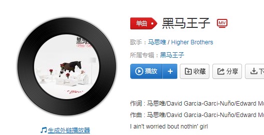 这首歌是来自马思唯 / Higher Brothers演唱的《黑马王子》,中国说唱代表人物、Higher Brothers团队领袖马思唯于2月28日发布全新专辑《黑马王子》,这是他首次以个人solo形式发布的第一张正式专辑。 这张以母语中文创作的专辑,历时6个月,横跨成都,纽约,洛杉矶,记录了他6年说唱生涯摸爬滚打的奋斗史。