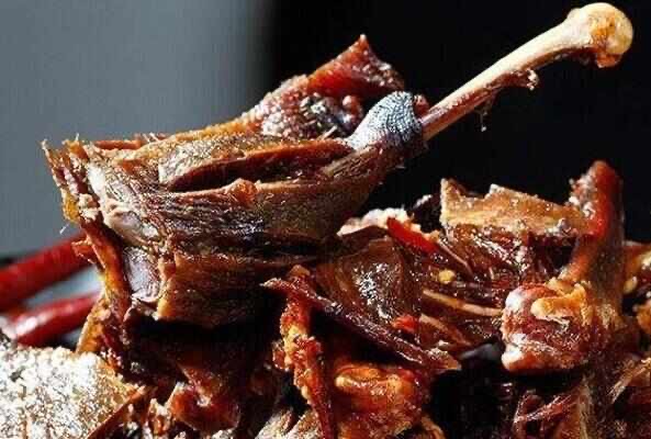 酱板鸭一般采用肉少个小的麻鸭,以保证板鸭紧实的口感,经过四层控温,慢卤后烘干,才能达到鸭骨根根分明,肉质莹润成丝。板鸭表面棕红油润,散发着独特的鲜辣香气,用手撕开,鸭肉呈琥珀般透亮。细细咀嚼,肉香浓郁,软硬适中,麻辣劲道,越嚼越香,连骨头都是酥的。