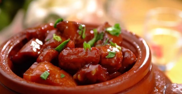 来自广东的菜系,口味偏清淡,著名的菜品有上汤焗龙虾、烧鹅、菠萝咕噜肉、沙茶牛肉、玫瑰豉油鸡等。【足记网】
