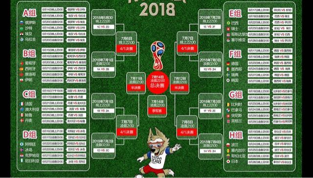 2018年的俄罗斯世界杯比赛分为小组赛阶段和淘汰赛阶段,其中小组赛阶段是由32支球队组成,平均分成8组,获得小组前两名的球队就可以晋级到淘汰赛阶段,该届世界杯比赛的时间是在2018年的6月14日到2018年的7月15日。