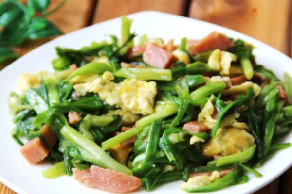 将韭菜洗净切段,然后把鹅蛋打入碗中,加入适量的食盐,接着火腿肠洗净切粒,锅中加油烧热,倒入鹅蛋,炒散后放入韭菜,并根据个人的口味加入调味料,最后撒上火腿粒即可出锅品尝。