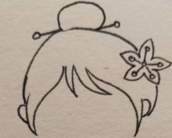 接着用弧线画出花木兰的发髻和发簪。