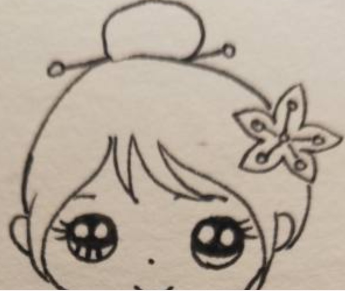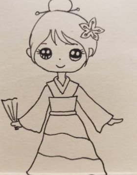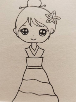 下面我们给小女孩画上长长的头发,她的头发是扎起来的马尾辫,看起来非常漂亮