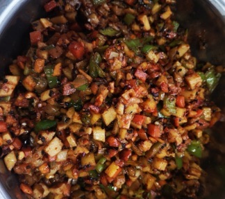 八宝辣子是陕西渭北人百吃不厌的一道菜,在油泼辣子中加入的肉蔬就多达八种,故名“八宝”。油汁鲜红,香辣味浓的八宝辣子,别说吃,就是看上一眼,也会让人垂涎三尺,再配上夹椽头馍,那可真是绝配!做好的八宝辣子也可以放入保鲜盒里,随吃随取,简单方便。