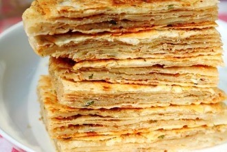 千层油酥饼是陕西特色小吃,相传是由唐代的千层烙饼经历代厨师不断精心改进而成,色泽金黄、层次鲜明、脆而不碎、油而不腻、香酥适口。