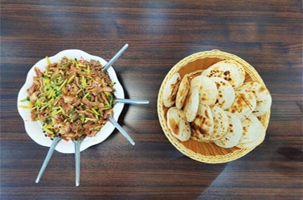 在郑州的街头,有很多卖白吉馍的小贩,白吉馍里边可以夹孜然羊肉,也可以夹腊汁肉,你既能吃到肉的软香,又能吃到饼皮的焦脆,肉中还带有浓郁的汤汁,越嚼越香。