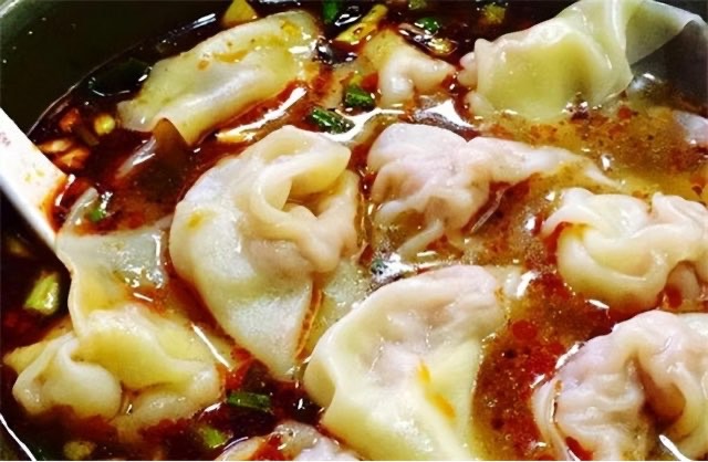 重庆抄手是一种小馄饨,但在汤中配上好吃的麻辣油,吃起来鲜美多汁,味道非常鲜美,也是极具重庆特色的美食。