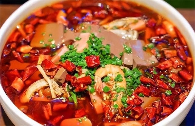 毛血旺也是极具重庆特色的美食,主要以鸭血为主,里面添加了各种食材口感吃起来,麻辣下饭是重庆必备的家常菜。