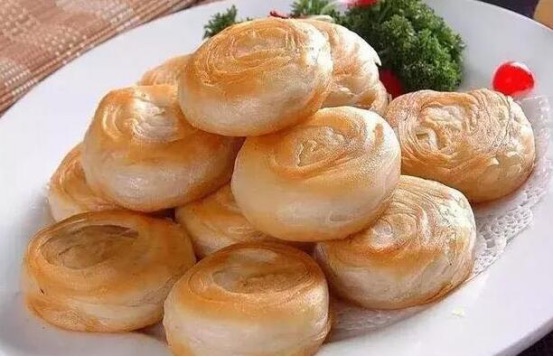 千层油酥饼是由唐代的千层烙饼经历代厨师不断精心改进而成。色泽金黄、层次鲜明、油而不腻、香酥可口。比较受小孩子喜欢。