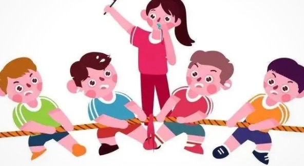 这是一种团队合作竞技游戏,两队人分别站在两端拉拽一条绳子,争取用力拉向自己的方向。其中一队成功将对方拉过中线即可获胜。