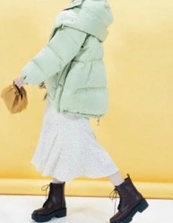 裙摆不需要太大,看得出轻盈就能中和马丁靴自身的硬朗。裙摆跟随脚步动作而出现的摇曳感,更增添女人味。