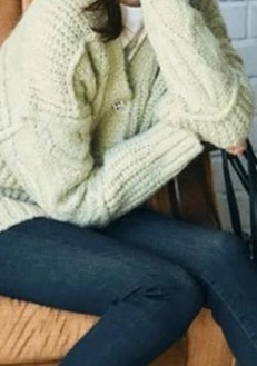 8、米白色靴子+白色毛衣+浅色牛仔裤