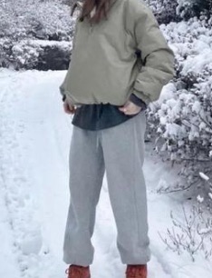 就像这一套搭配,虽然换上了运动鞋,但运动裤就稍长,裤腿也更宽大,整体比较慵懒舒适。
