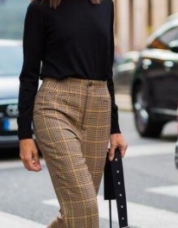 最近格纹元素可以说火的一塌糊涂,修身的黑色毛衣搭配格纹直筒裤,稍微掩盖住白色靴子的鞋面,高跟彰显干练女王气质,外搭大衣,又酷又帅,很适合职场走干练范的女性。
