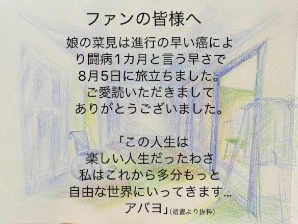 《在下坂本,有何贵干?》漫画家佐野菜见因癌症迅速恶化于8月5日去世,享年36岁。