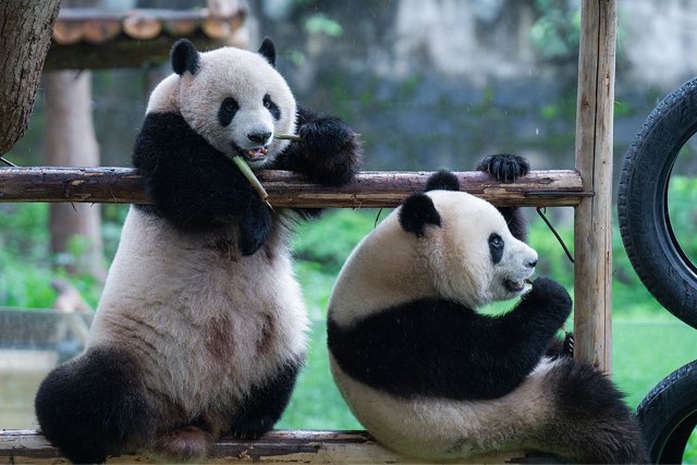 中国大熊猫是一种濒危哺乳动物,也是世界上最受欢迎的动物之一,以其可爱、稀有而被誉为中国的“国宝”。大熊猫是一种体型庞大、圆胖可爱的熊科动物,毛色黑白相间,头部与身体接缝处呈现出一个非常明显的“V”字形。【足记网】大熊猫的食性十分特殊,几乎只吃竹子。大熊猫是一种候季性动物,每年仅有2-3天的发情期。雄性大熊猫在发情期会通过呼唤和标记来吸引雌性大熊猫的注意。大熊猫的繁殖能力低下,通常在4-5岁左右开始交配,每年仅产1-2只幼仔。