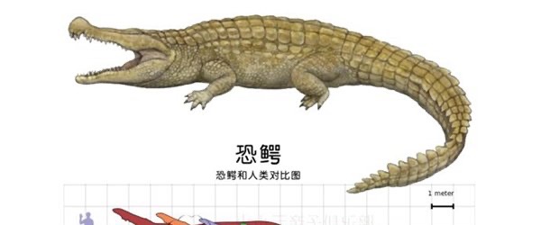 恐鳄身体长度大约10米,这是目前已知灭绝的大型的鳄类,是现代鳄鱼的祖先,主要生活在白垩纪晚期。