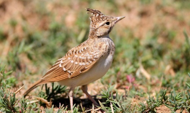 百灵鸟是中国一个比较熟悉的观赏鸟,产于青海东部以及内蒙古广大地区,这种鸟的叫声很好,关在笼子里它也能歌善舞。
