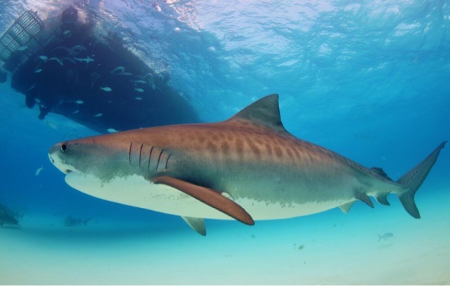 鼬鲨又叫虎鲨,是海洋中最凶猛的海洋生物之一,它们有着更加锋利的牙齿,通常成群结队的外出活动捕食,主要分布在世界范围内的温带和热带水域中,虎鲨的食性非常杂,而且拥有良好的视觉和嗅觉,它们能侦测到动物们藏身处电磁场的变化,他们也能感觉到远处鱼群游水时引起的水流波动,虎鲨的牙齿使它们几乎无坚不摧,而且永远不会掉光,损坏的牙能够从新生长,一旦脱落后面的牙齿就会自动补齐,所以它们往往会攻击比它身体大几倍的猎物,异常凶猛。