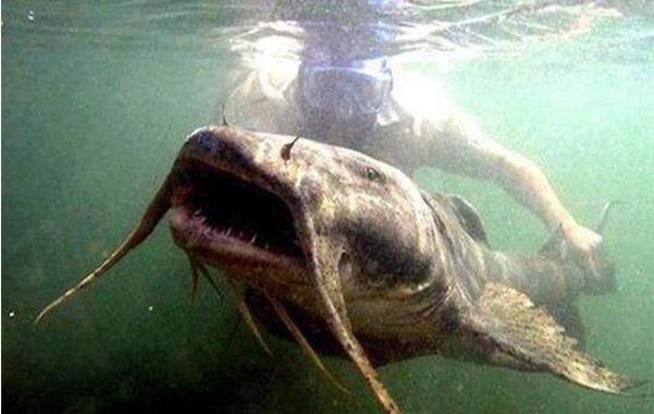 这种鱼的尺寸相当大,主要生活在欧洲中部、南部和东欧,它可以达到5米和300公斤,是世界上最大的淡水鱼之一,对于其余的水下居民来说,这意味着什么呢?他们中的大多数可能最终成为午餐或晚餐的选择,这条鲶鱼甚至有记录显示曾在陆地上伏击鸽子。