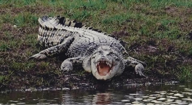 尼罗鳄是一种大型爬行动物,属于类似恐龙的类群爬行动物鳄形目,是世界上最大的非棘龙的鳄鱼。它主要分布在非洲的河流、湖泊和沼泽等水域中,是非洲大陆上最大的爬行动物之一。它们会利用自己的嗅觉和听觉来帮助发现猎物,在水中悄悄地接近猎物,然后突然袭击。