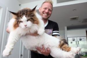 Samson的主人说,缅因猫Samson食量惊人,每天要进食6罐食物,每周吃数包干粮,如果不吃这么多食物,根本就没办法支持它的体型了,难怪很多爱猫人士都不敢养缅因猫了,因为养不起啊,吃的比自己都贵!!而可爱的Samson也因此成为了纽约市的网红猫,十分受人喜欢。【足记网】而相比之下世界上最小的猫,估计会被Samson一脚踩死。