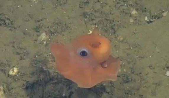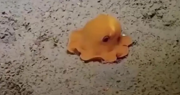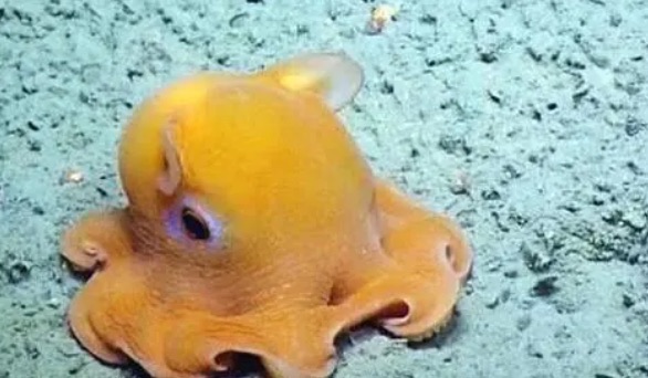 这种章鱼叫做加利福尼亚面蛸,但是人们都习惯叫它们烙饼章鱼,分布在加州东北部的太平洋外海,白令海和西北太平洋一带也有发现,栖息深度为500~1500米,幼体通常生活在200米的光合作用带,成年后向深海移动;烙饼章鱼通常的颜色为透亮的橙红色,体型最大的才达到了20厘米,而八条触手非常的短小,张开时身体呈现出一种伞状而且几乎是扁平的,因此被人们形象的称之为烙饼章鱼!最值得一说的就是它们的颜值,看到后你一定不忍心吃它们,而且还有种想保护它们的冲动,因为它们呆萌可爱的形象被很多人喜爱,甚至在电影中都出现过它们的身影,它们在受到危险的时候会用触手将自己的身体围起来,就好像害羞的把自己的脸遮住一样,抱成一团软绵绵的躺着十分的惹人喜爱~