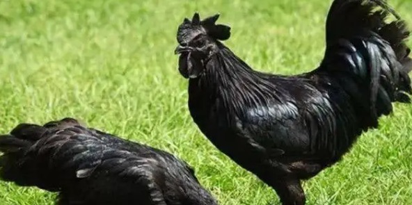 西马尼乌鸡是一种原产于印度尼西亚的现代鸡品种,由于它们不仅拥有着一身漆黑的毛发,就连皮肤与内脏都是黑色,只有血液是正常的红色,是乌鸡中最高端的品种,所以它们的售价一只便可达2500美元。