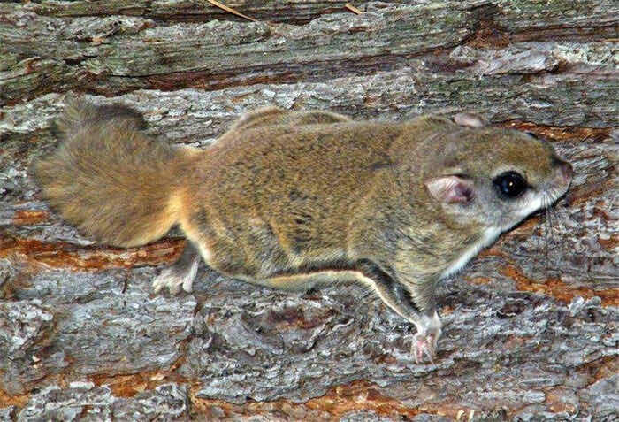 它经常趴在高大的树干上,长尾巴垂着,或者活跃在树梢上,形态与松鼠很接近,但当它张开翼膜,两者的区别就很明显。